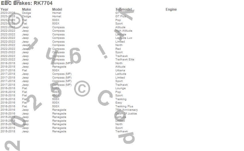500X, Compass, Hornet, Renegade, Dodge, Fiat, Jeep, 2025, 2024, 2023, 2022, 2018, 2017, 2016, 2015