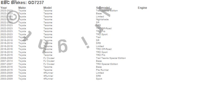 Below is an abbreviated list of applications for the 3GD Series Sport Slotted Rotor Set.