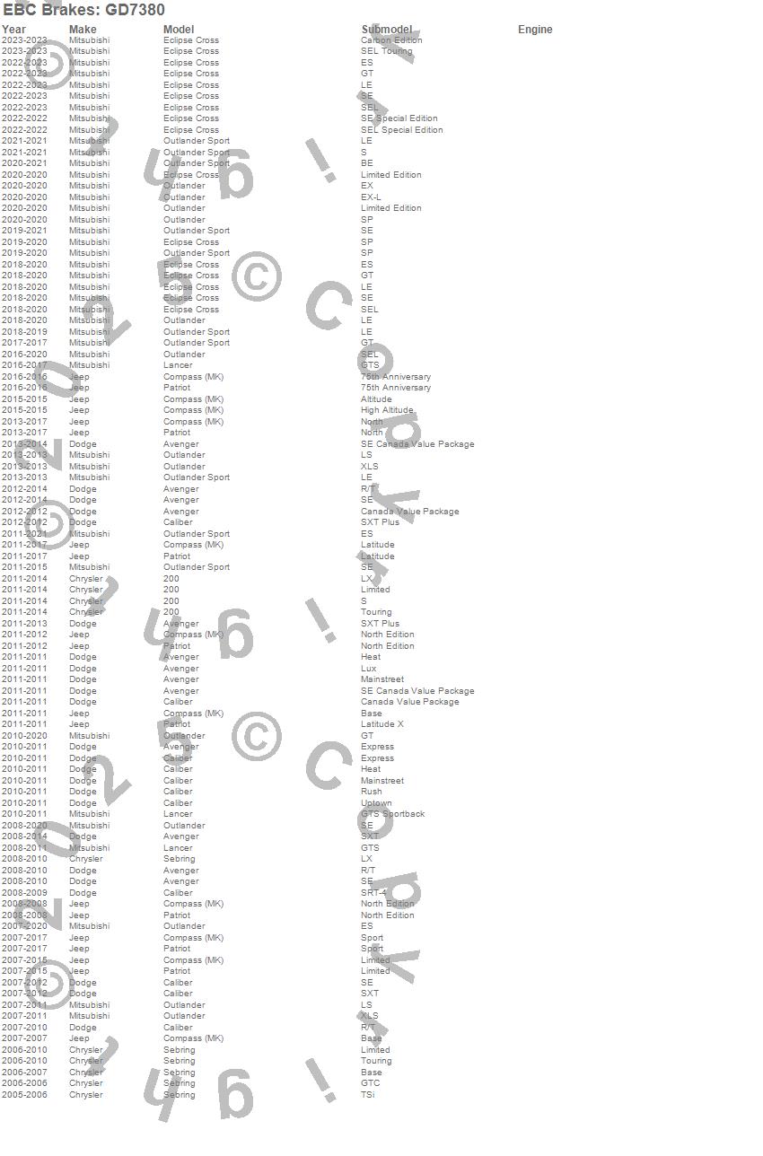 Below is an abbreviated list of applications for the 3GD Series Sport Slotted Rotor Set.