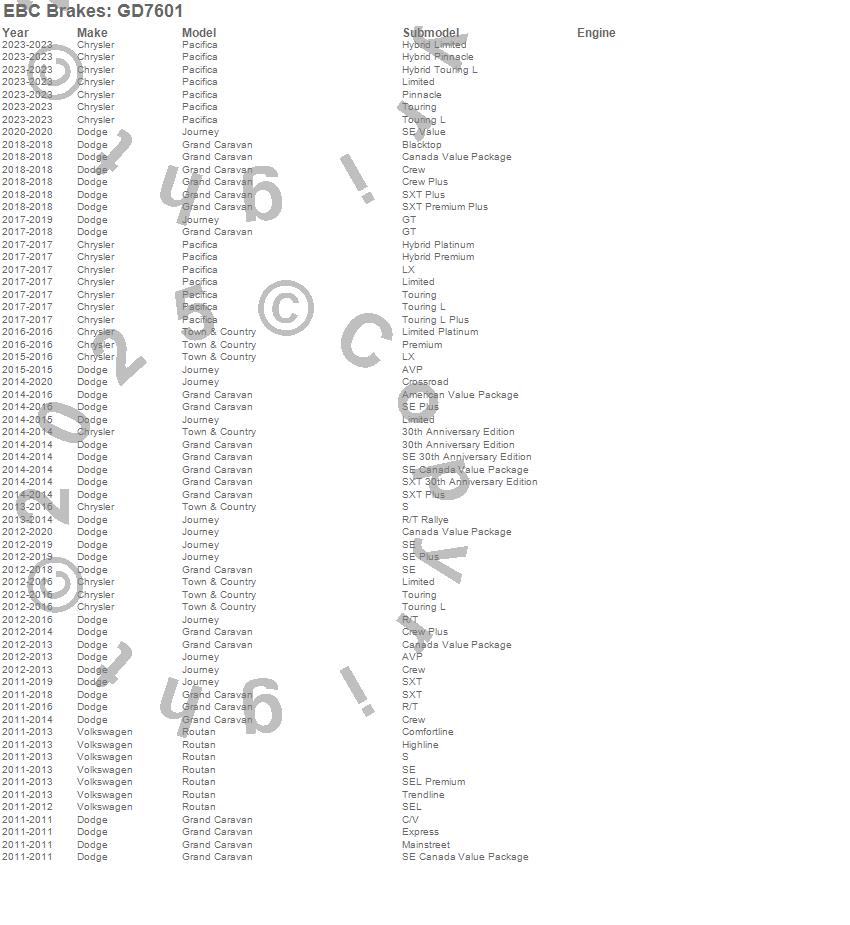 Grand Caravan, Journey, Pacifica, Routan, Town & Country, Chrysler, Dodge, Volkswagen, 2023, 2020, 2019, 2018, 2017, 2016, 2015, 2014, 2013, 2012, 2011