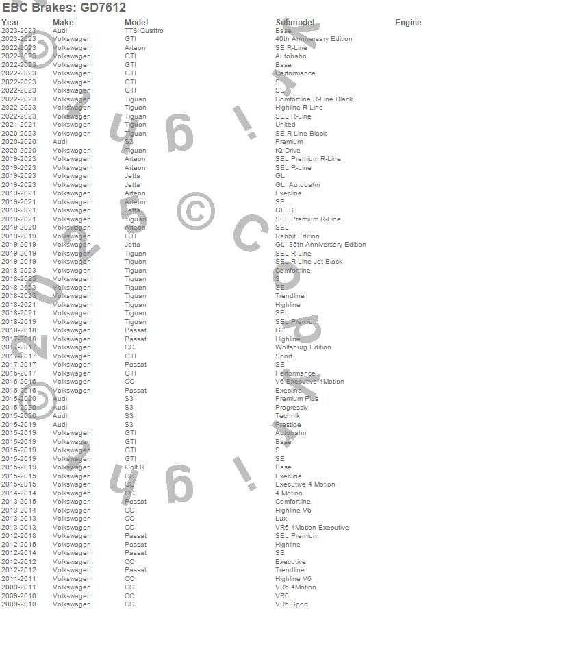 Below is an abbreviated list of applications for the 3GD Series Sport Slotted Rotor Set.
