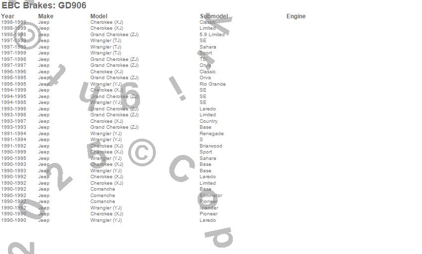 Cherokee (XJ), Comanche, Grand Cherokee (ZJ), Wrangler (TJ), Wrangler (YJ), Jeep, 1999, 1998, 1997, 1996, 1995, 1994, 1993, 1992, 1991, 1990