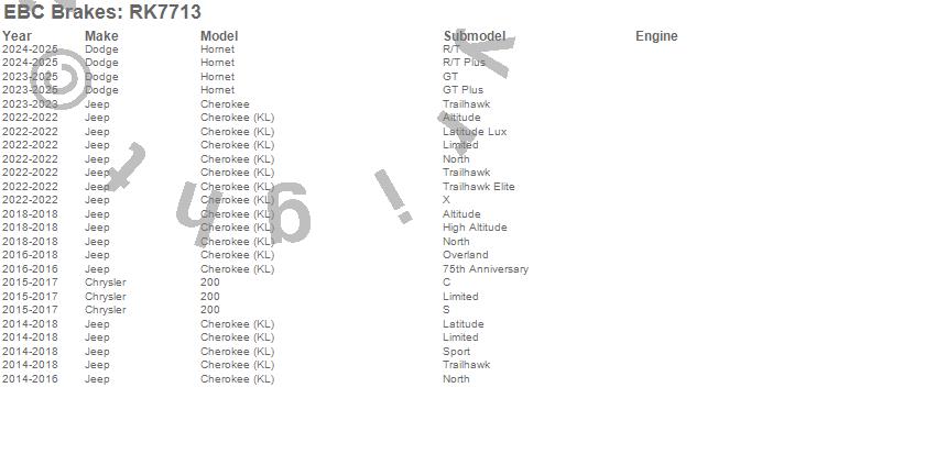 200, Cherokee, Cherokee (KL), Hornet, Chrysler, Dodge, Jeep, 2025, 2024, 2023, 2022, 2018, 2017, 2016, 2015, 2014
