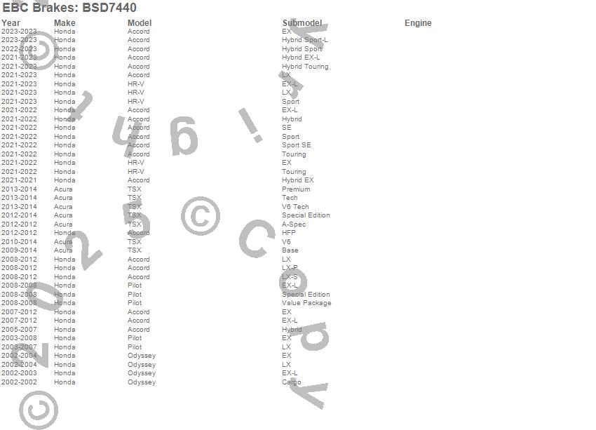 Below is an abbreviated list of applications for the BSD Series Sport Rotor Set w/Ultra Quiet V Slot Configuration.