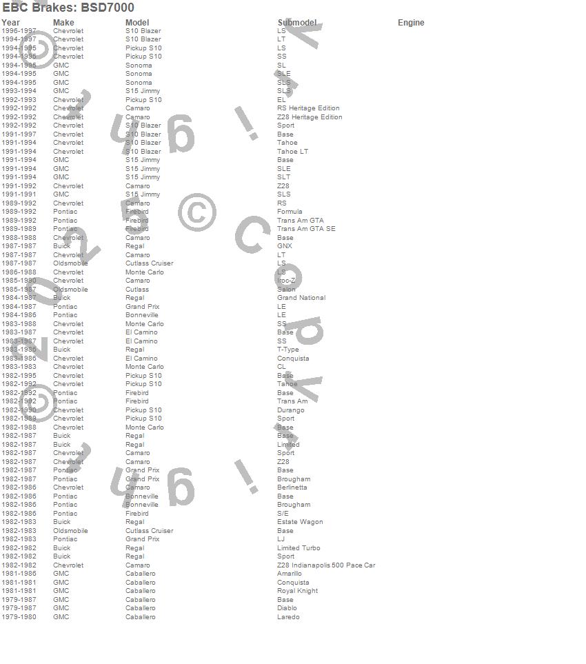 Below is an abbreviated list of applications for the BSD Series Sport Rotor Set w/Ultra Quiet V Slot Configuration.