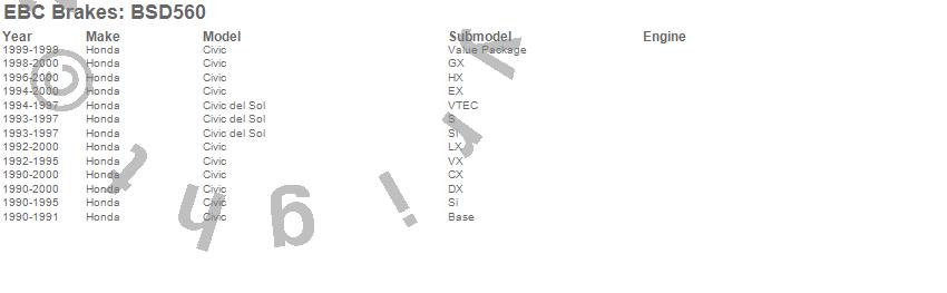 Below is an abbreviated list of applications for the BSD Series Sport Rotor Set w/Ultra Quiet V Slot Configuration.