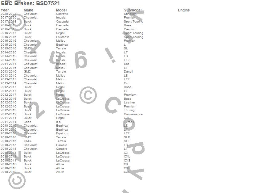 Below is an abbreviated list of applications for the BSD Series Sport Rotor Set w/Ultra Quiet V Slot Configuration.