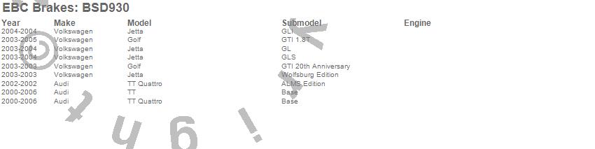 Below is an abbreviated list of applications for the BSD Series Sport Rotor Set w/Ultra Quiet V Slot Configuration.