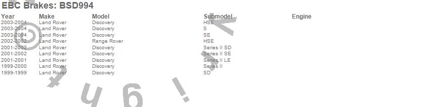 Below is an abbreviated list of applications for the BSD Series Sport Rotor Set w/Ultra Quiet V Slot Configuration.