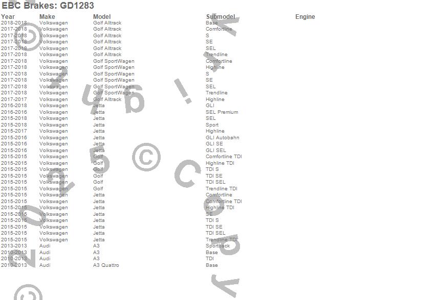 Below is an abbreviated list of applications for the 3GD Series Sport Slotted Rotor Set.