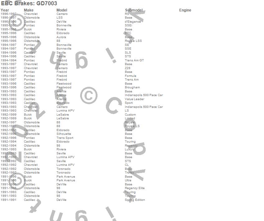 88, 98, Allante, Aurora, Bonneville, Camaro, DeVille, Eldorado, Firebird, Fleetwood, LeSabre, LSS, Lumina APV, Park Avenue, Riviera, Seville, Silhouette, Toronado, Trans Sport, Buick