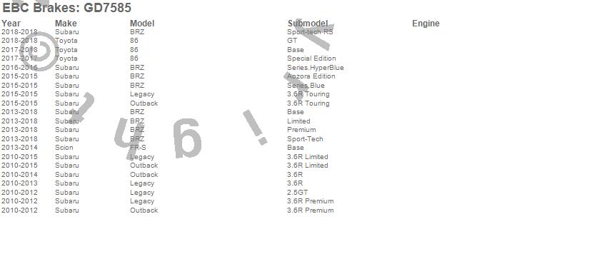 Below is an abbreviated list of applications for the 3GD Series Sport Slotted Rotor Set.