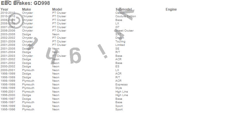 Neon, PT Cruiser, Chrysler, Dodge, Plymouth, 2010, 2009, 2008, 2007, 2006, 2005, 2004, 2003, 2002, 2001, 2000, 1999, 1998, 1997, 1996