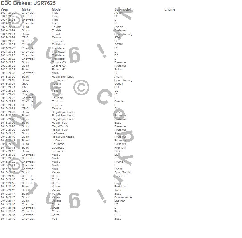 Below is an abbreviated list of applications for the USR Series Sport Slotted Rotor Set.