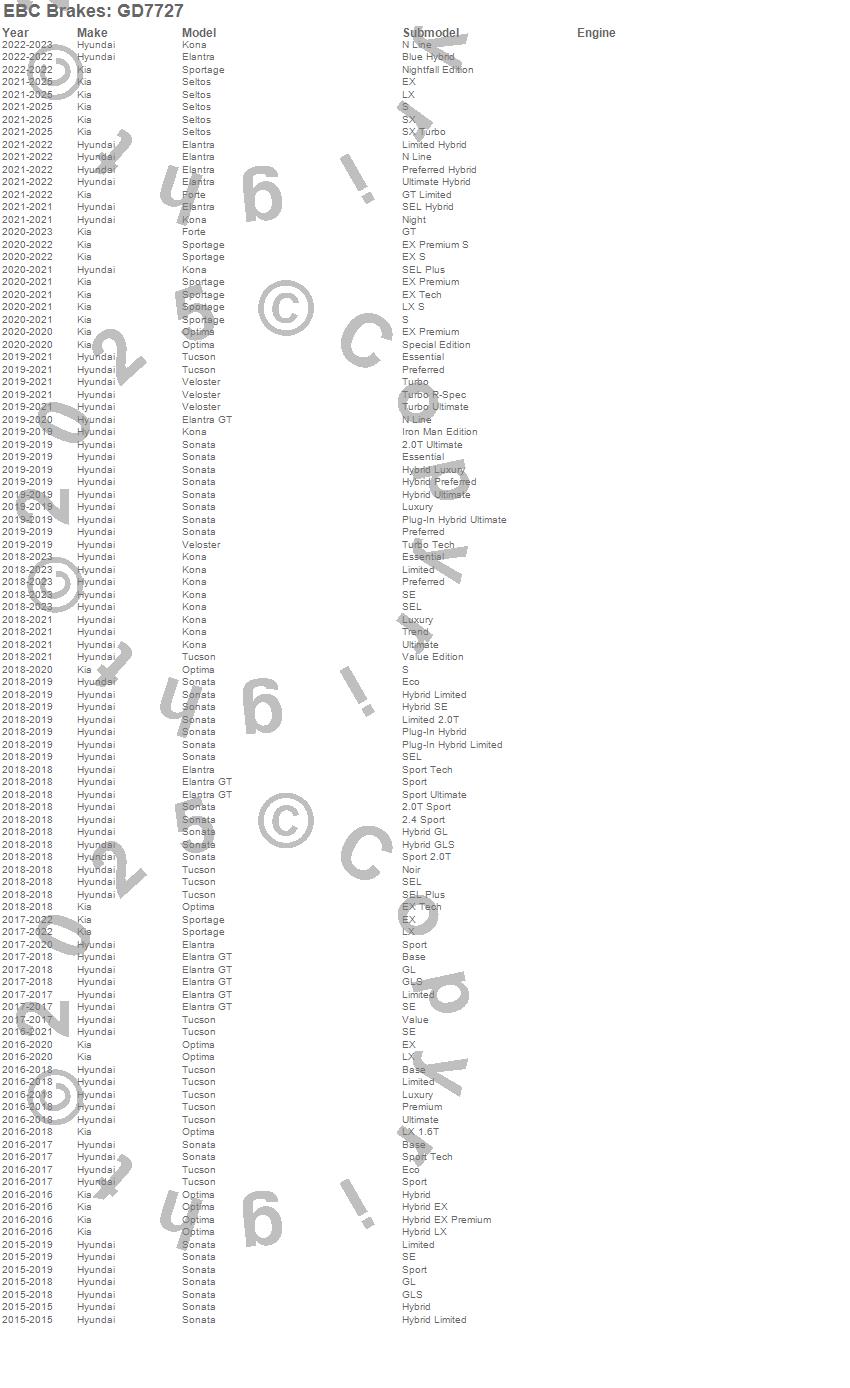 Below is an abbreviated list of applications for the 3GD Series Sport Slotted Rotor Set.