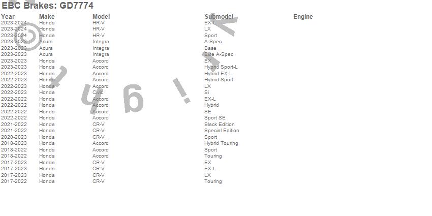 Below is an abbreviated list of applications for the 3GD Series Sport Slotted Rotor Set.