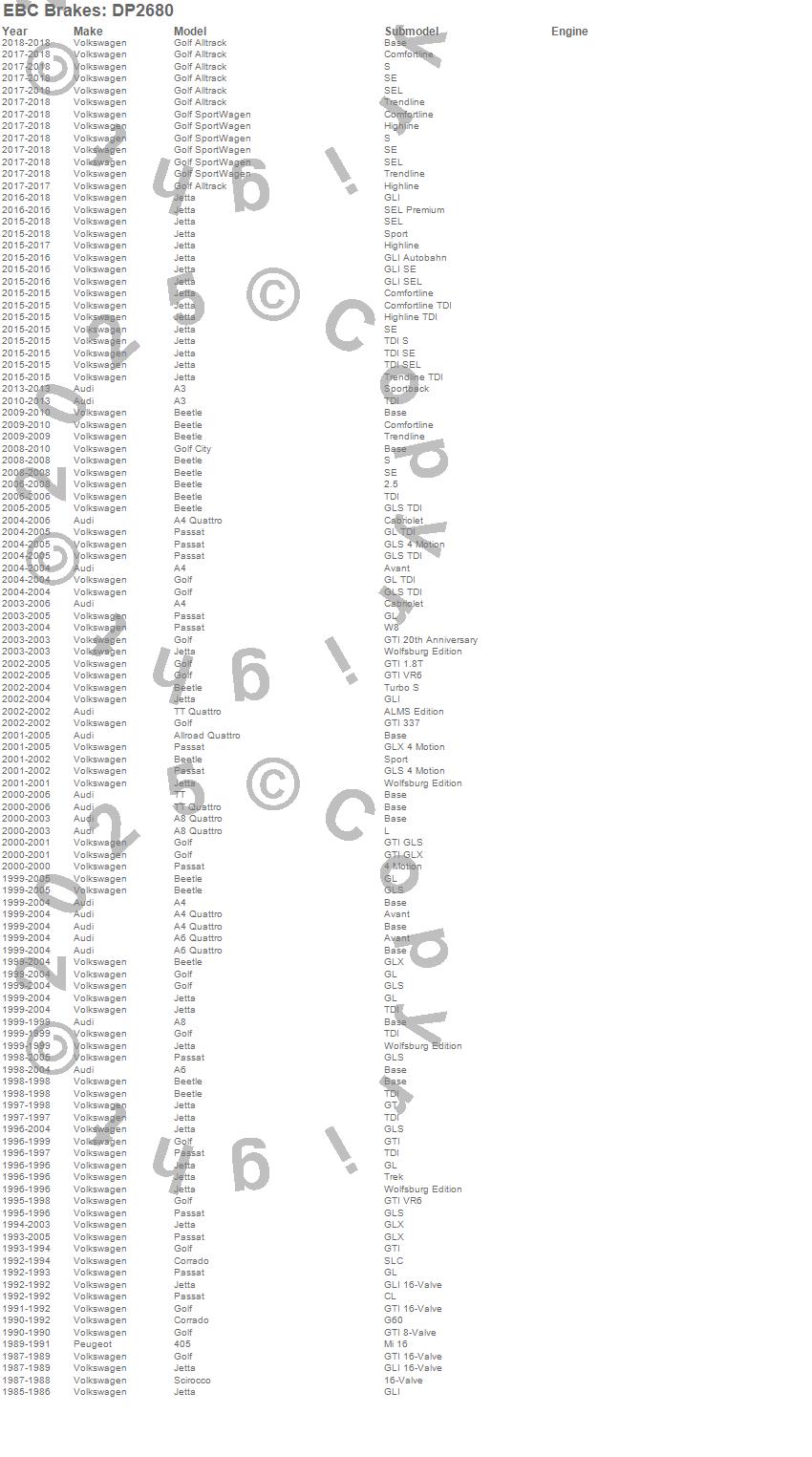 Below is an abbreviated list of applications for the Greenstuff 2000 Series Sport Brake Pads.