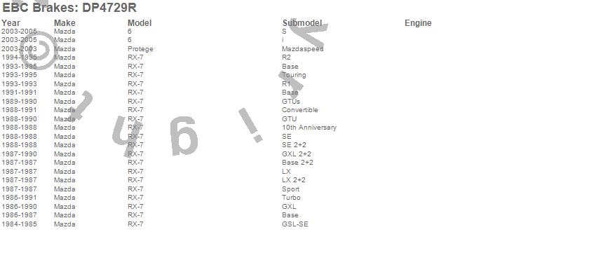 6, Protege, RX-7, Mazda, 2005, 2004, 2003, 1995, 1994, 1993, 1991, 1990, 1989, 1988, 1987, 1986, 1985, 1984