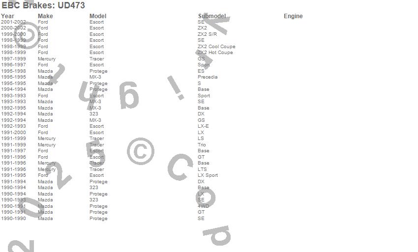 Below is an abbreviated list of applications for the Ultimax OEM Replacement Brake Pads.
