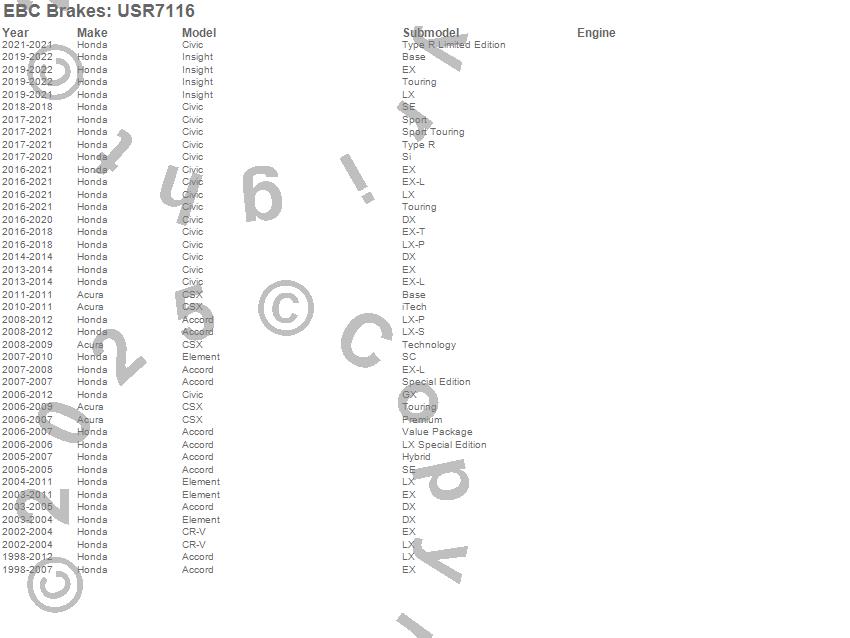 Below is an abbreviated list of applications for the USR Series Sport Slotted Rotor Set.