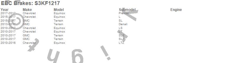 Below is an abbreviated list of applications for the S3 Kits Greenstuff 6000 and GD Rotors Truck/SUV.