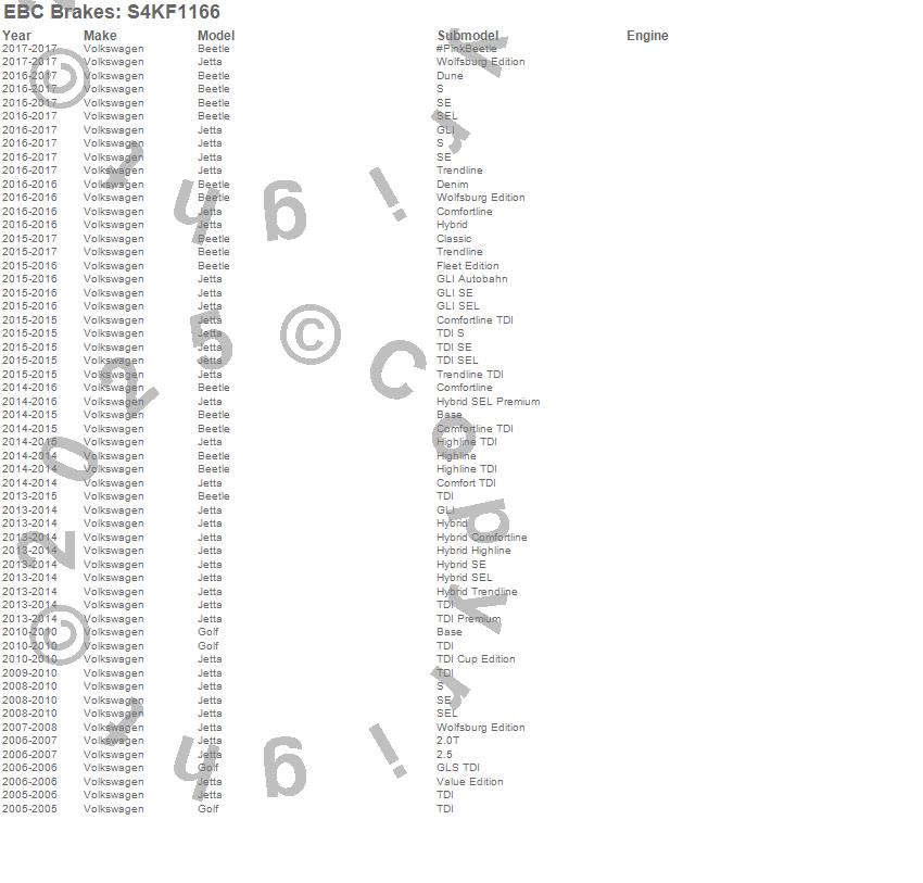 Below is an abbreviated list of applications for the S4 Kits Redstuff and USR Rotor.