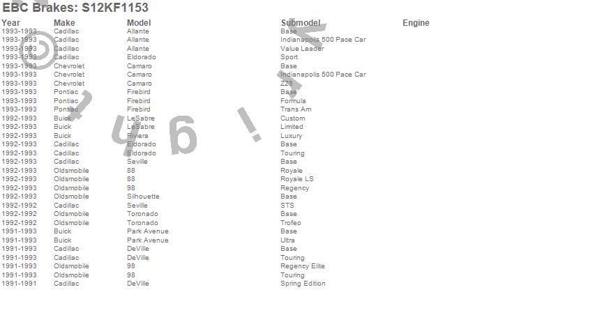 Below is an abbreviated list of applications for the S12 Kits Redstuff and RK Rotors.