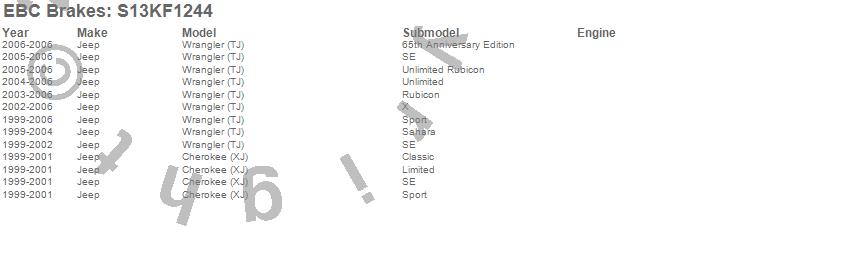 Below is an abbreviated list of applications for the S13 Kits Yellowstuff and RK Rotors.