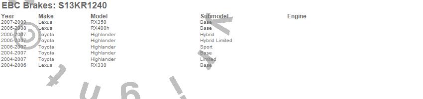 Below is an abbreviated list of applications for the S13 Kits Yellowstuff and RK Rotors.