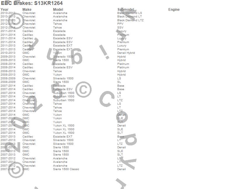 Below is an abbreviated list of applications for the S13 Kits Yellowstuff and RK Rotors.