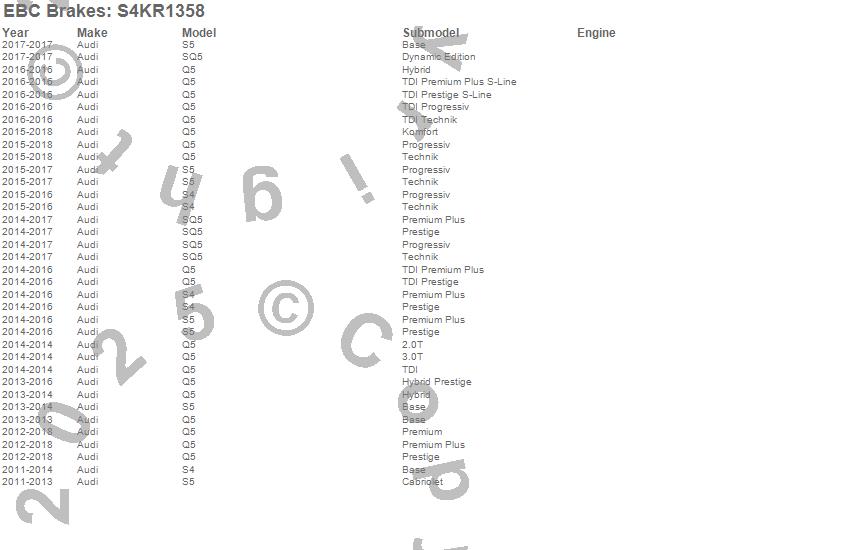 Below is an abbreviated list of applications for the S4 Kits Redstuff and USR Rotor.