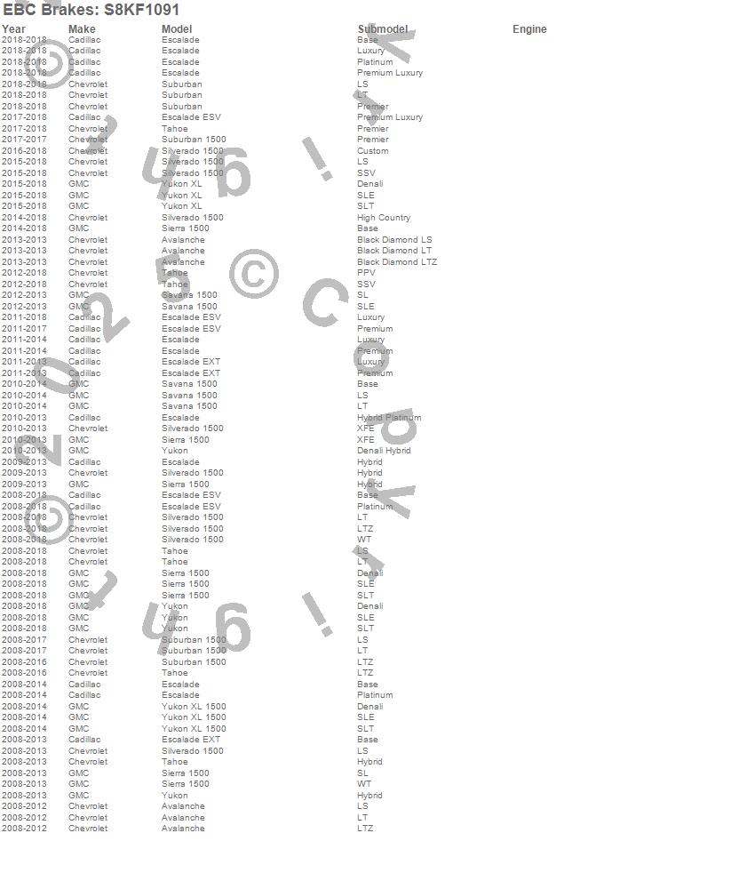 Below is an abbreviated list of applications for the S8 Kits Orangestuff and GD Rotors.