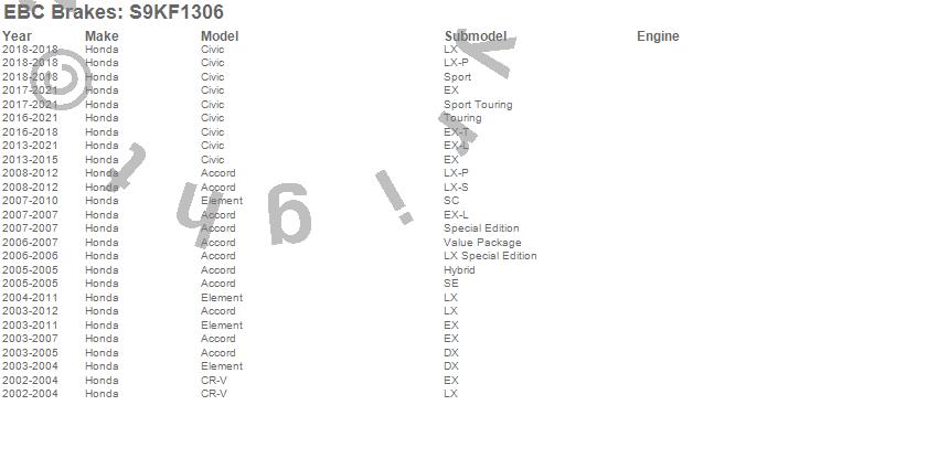 Below is an abbreviated list of applications for the S9 Kits Yellowstuff and USR Rotors.