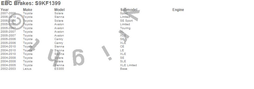 Below is an abbreviated list of applications for the S9 Kits Yellowstuff and USR Rotors.