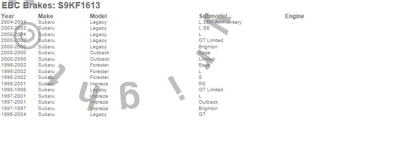 Below is an abbreviated list of applications for the S9 Kits Yellowstuff and USR Rotors.