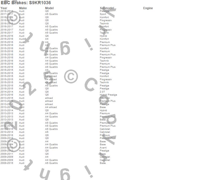 Below is an abbreviated list of applications for the S9 Kits Yellowstuff and USR Rotors.