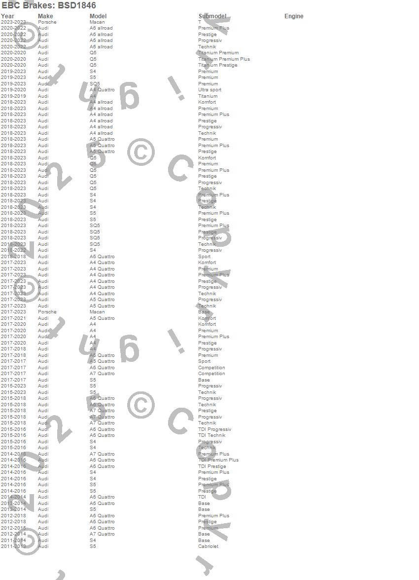 Below is an abbreviated list of applications for the BSD Series Sport Rotor Set w/Ultra Quiet V Slot Configuration.