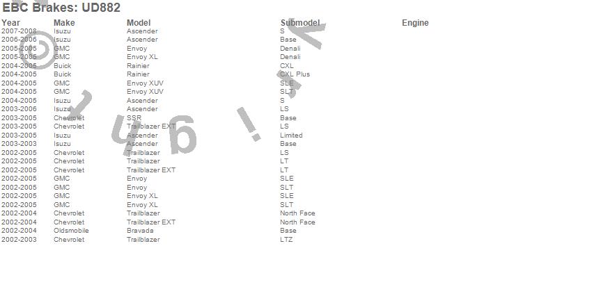 Ascender, Bravada, Envoy, Envoy XL, Envoy XUV, Rainier, SSR, Trailblazer, Trailblazer EXT, Buick, Chevrolet, GMC, Isuzu, Oldsmobile, 2008, 2007, 2006, 2005, 2004, 2003