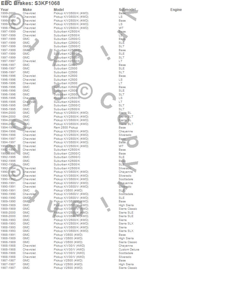Below is an abbreviated list of applications for the S3 Kits Greenstuff 6000 and GD Rotors Truck/SUV.