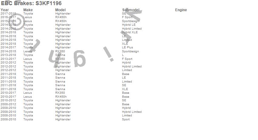 Below is an abbreviated list of applications for the S3 Kits Greenstuff 6000 and GD Rotors Truck/SUV.
