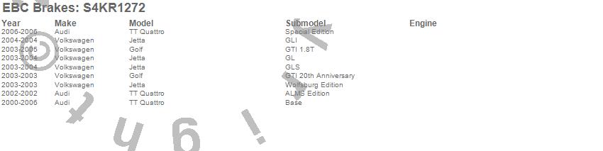 Below is an abbreviated list of applications for the S4 Kits Redstuff and USR Rotor.