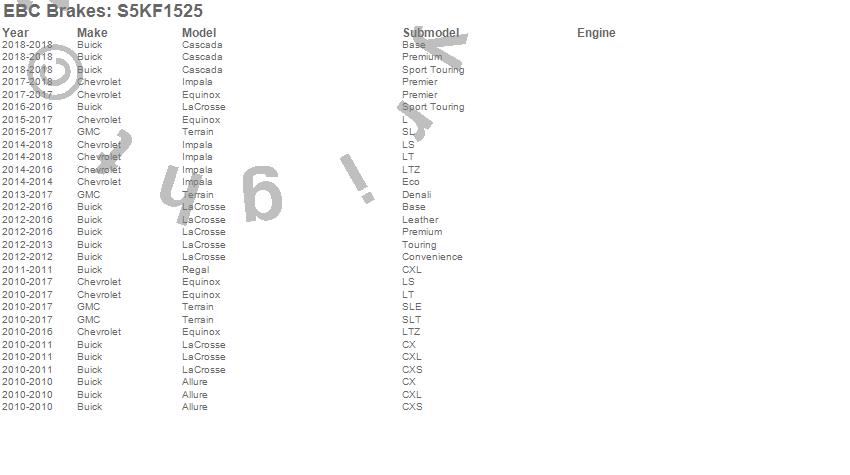 Below is an abbreviated list of applications for the S5 Kits Yellowstuff And GD Rotors.