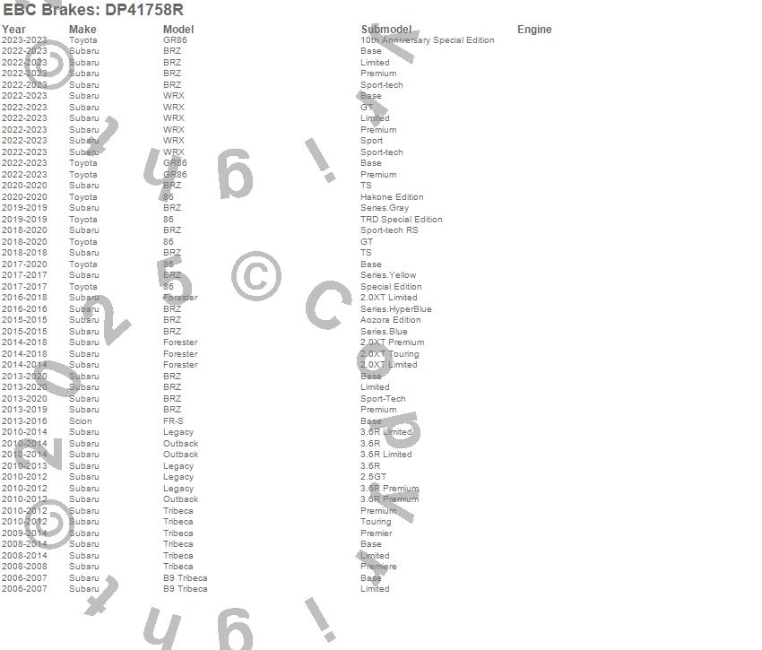 86, B9 Tribeca, BRZ, Forester, FR-S, GR86, Legacy, Outback, Tribeca, WRX, Scion, Subaru, Toyota, 2023, 2022, 2020, 2019, 2018, 2017, 2016
