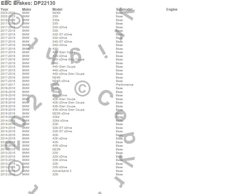 228i, 228i xDrive, 230i, 230i xDrive, 320i, 320i xDrive, 328d, 328d xDrive, 328i, 328i GT xDrive, 328i xDrive, 330e, 330i, 330i GT xDrive, 330i xDrive, 335i, 335i GT xDrive, 335i xDrive, 340i, 340i GT xDrive