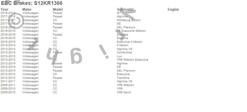 Below is an abbreviated list of applications for the S12 Kits Redstuff and RK Rotors.
