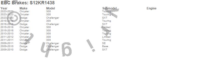 Below is an abbreviated list of applications for the S12 Kits Redstuff and RK Rotors.