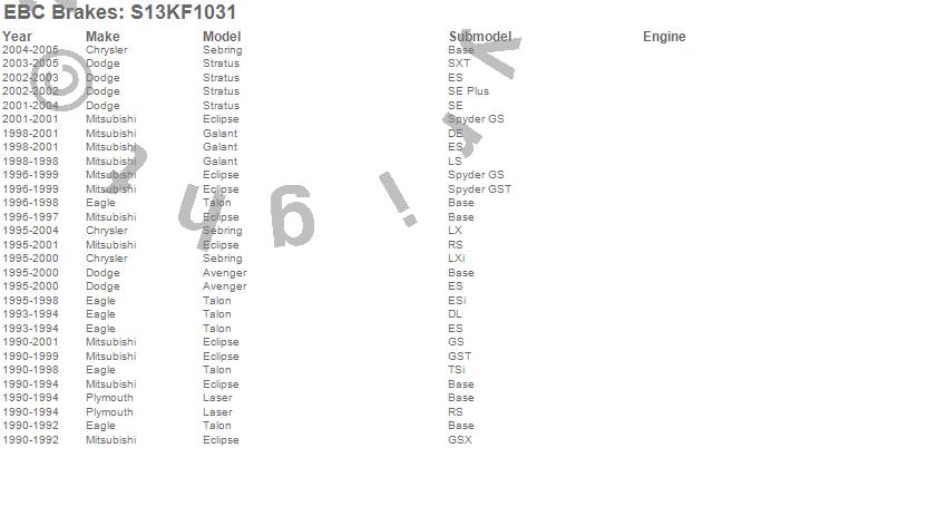 Below is an abbreviated list of applications for the S13 Kits Yellowstuff and RK Rotors.