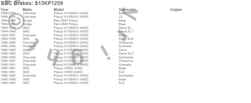 Below is an abbreviated list of applications for the S13 Kits Yellowstuff and RK Rotors.