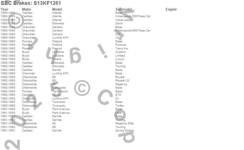 Below is an abbreviated list of applications for the S13 Kits Yellowstuff and RK Rotors.