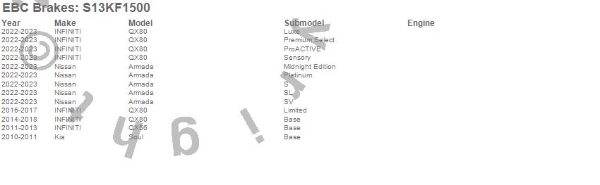 Below is an abbreviated list of applications for the S13 Kits Yellowstuff and RK Rotors.